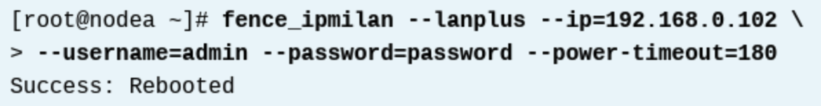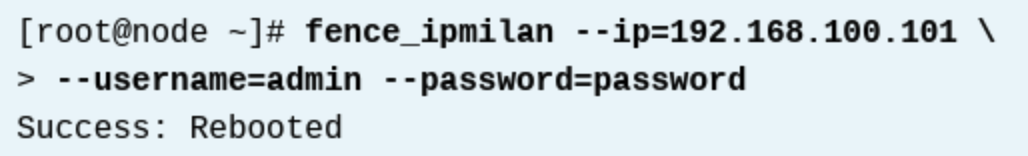 fence_ipmilan은 아래와 같은 명령으로 Fence를 수행할수도 있다.
