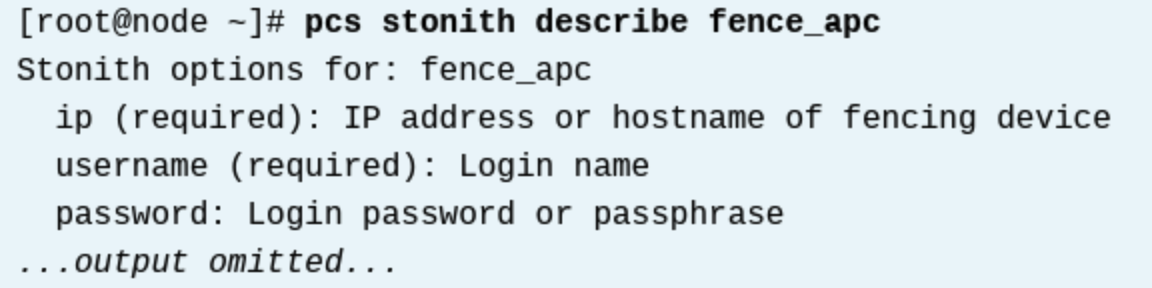 이 명령은 특정 fence device에 대해 설정할 수 있는 모든 필수/선택 매개변수를 보여준다.
