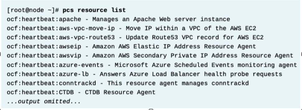 Redhat High Availability 애드온은 클러스터 리소스를 위한 광범위한 지원을 제공한다. 클러스터 리소스들은 agents라고 부르는 스크립트에 의해 관리된다. agents 들은 클러스터 리소스에 대하여 start/stop/monitor 3가지를 하는데 필요하다.
