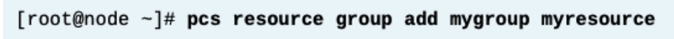 현재 존재하는 리소스는 리소스 그룹에 추가될 수 있다. 클러스터 관리자는 pcs resource group add groupname resourcename 명령으로 추가할 수 있다. 만약 해당 리소스가 이미 다른 그룹의 멤버라면, 위 명령어를 쳤을 때 현재 그룹에서 빠지고 명령어에 명시된 그룹에 추가되게 된다. 명시한 그룹이 없는 그룹이라면, 자동으로 그룹을 만들게 된다.