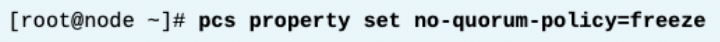 따라서 쿼럼을 잃게 되는 경우, 모든 리소스가 stop 되게 되니 GFS2 파일 시스템 리소스를 중지하려고 한다. 그런데 gfs2는 쿼럼이 있어야만 정상작동하므로 이gfs2에 대한 모든 중지 시도가 실패하여 결국 클러스터가 완전히 실패하게 된다. 이를 방지하기 위해 no-qurum-policy를 freeze로 둠으로써, 클러스터는 쿼럼이 회복될 때까지 리소스를 중지시키지 않고 아무 작업도 수행하지 않게 한다.