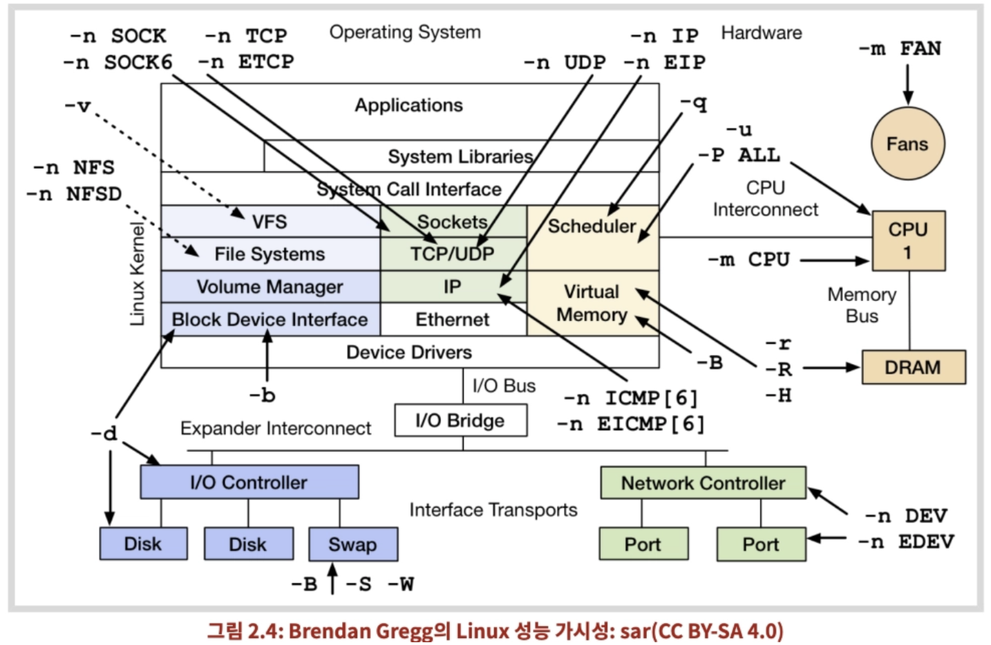 Brendan Gregg의 원본 그래픽은 Linux 성능 가시성: sar 여기서 확인 가능https://www.brendangregg.com/linuxperf.html