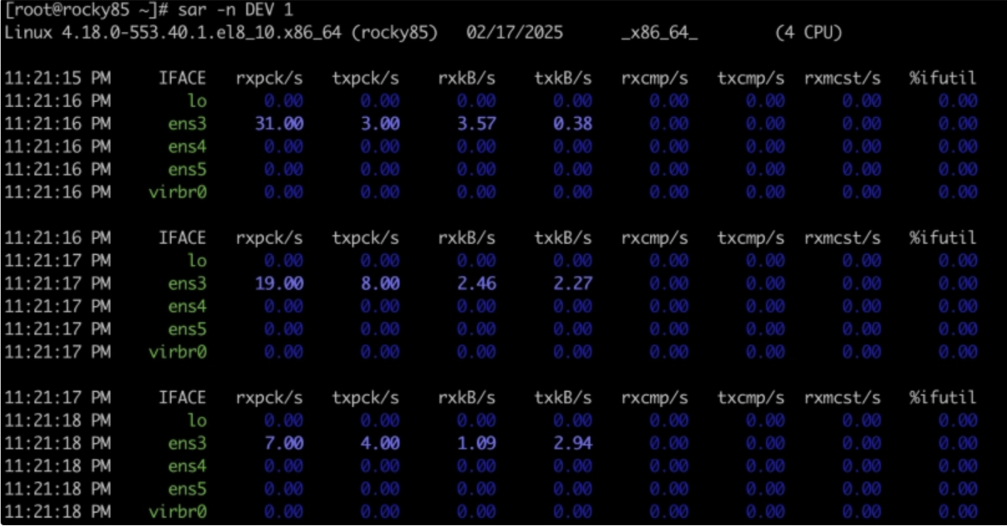 - sar 명령을 사용하여 시스템 상태에 대한 순간 데이터를 수집할 수도 있다.