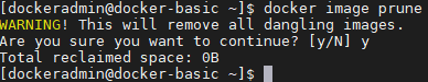 - 해당 이미지로 만들어놓은 컨테이너가 존재한다면, 이미지는 삭제되지 않음. (컨테이너가 살아있든 중단되었든 , docker ps -a 로 보이는 경우)