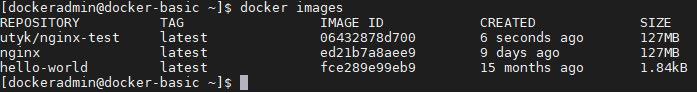 - 아래처럼 원래 있는 nginx의 IMAGE ID와 utyk/nginx-test의 IMAGE ID가 동일하다.