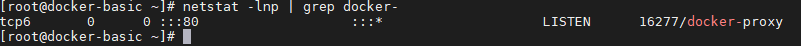 예를들어, -p 8080:80 옵션을 사용해서 컨테이너 포트를 오픈하면, docker-proxy가 생성되며, 8080포트를 리스닝하는것을 확인할 수 있다.