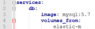 다른 컨테이너가 가진 모든 볼륨을 마운트 할 때는 volumes_from: 에 해당 컨테이너를 지정한다. 아래 예시처럼 elastic-m 이라는 컨테이너의 볼륨을 그대로 재사용한다.