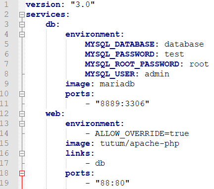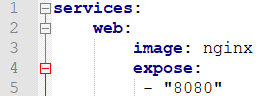 ports는 컨테이너가 공개하는 포트이다. 즉 호스트OS의 포트와 컨테이너의 포트를 binding 해준다. "호스트포트번호:컨테이너포트번호" 형식으로 지정하거나, 컨테이너의 포트번호만 지정한다. 컨테이너 포트번호만 지정하면, 호스트 포트는 랜덤하게 설정된다.