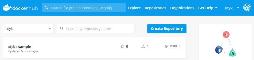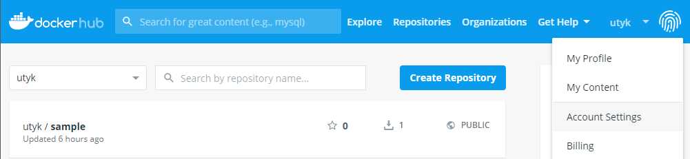 다시 도커허브로 돌아온다. Create Repository를 선택한다.