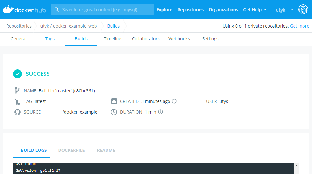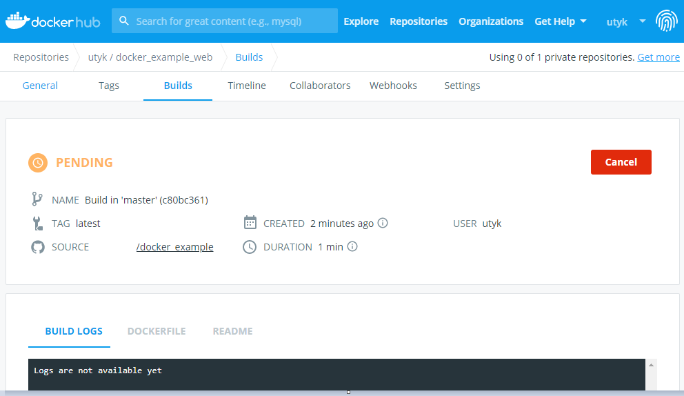 3. 도커허브에서 연동된 github의 dockerfile을 바탕으로 이미지 생성하기