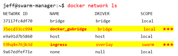 오버레이 네트워크(Ingress 네트워크 포함)를 개별 Docker daemon의 물리적 네트워크에 연결하는 브릿지 네트워크이다. 기본적으로, service가 실행 중인 각각의 컨테이너는 로컬 Docker daemon host의 docker_gwbridge network에 연결된다. 이 docker_gwbridge 네트워크는 docker swarm을 init 하거나 join 할 때 생성된다.