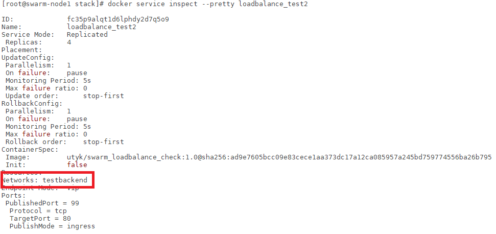 docker service create --name loadbalance_test2 --network=testbackend --replicas 4 -p 99:80 utyk/swarm_loadbalance_check:1.0