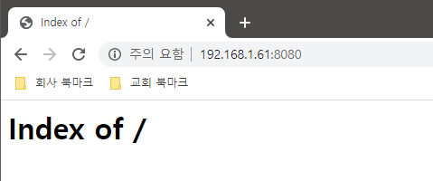 이 폼은 위에 공식 도커허브에 나오는 폼의 변형이며, 호스트 서버의 /apache 경로에 html 파일을 저장하면 된다. httpd는 /usr/local/apache2/htdocs에 html파일들을 저장하기 때문. 결과는 다음과 같다. 여기에 홈페이지 통파일을 올리면 된다.
