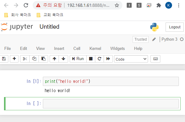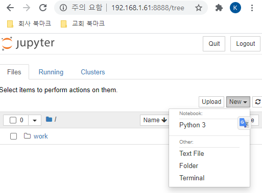IP를 192.168.1.61로 한 이유는 외부에서 접속하기 때문이며, 도커를 설치한 가상머신 자체에서 실행한다면 위에 나온대로 IP를 127.0.0.1로 하면 된다. 아래와 같은 화면이 나온다.