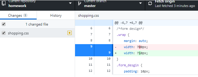 실제로 내 파일들을 수정하면, 깃허브 데스크탑에서 변동사항을 볼 수 있다.
