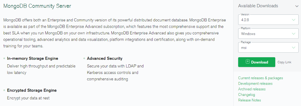 몽고디비 커뮤니티 서버를 받아야 하며, 운영체제는 내 운영체제에 맞게 선택하고 다운.