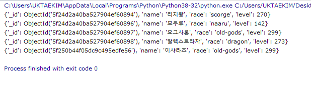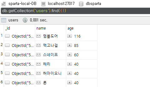 실습2 : 넣은 데이터에 데이터베이스 명령 사용해보기