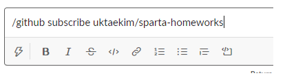 /github subscribe uktaekim/sparta-homeworks (계정명/레포지토리명)