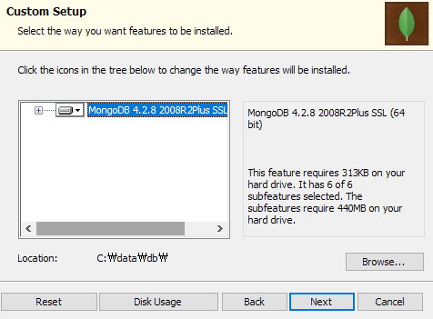 설치중 선택할 게 엄청 많은데, 싹 다 next로 넘어감.