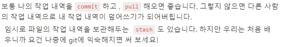 예를 들어, 내가 코드 수정하고 commit 후 push 한 후, 다른사람이 그걸 수정하고 commit 하고 push하면, 내가 그걸 pull 해서 이어서 작업하는 식.