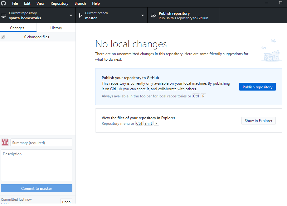 내 로컬 저장소에 작업을 하고, (예를들어 파이참에서 수정을 하고, git desktop에 들어가서) 변경사항을 반영함. 즉 파이참(외에 뭐든,노트패드도 뭐도 다) 등의 내가 쓰는 프로그램에서 수정을 하면, git desktop에서 감지한다. 그걸 commit로 변경사항을 "이게 맛다" 고 갱신하는거.