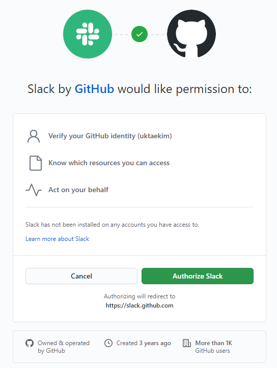 슬랙은 다양한 어플이 있고, 깃허브기능이 있는 어플이 있다. 원리는 슬랙에 있는 github 봇을 사용하는 것임.