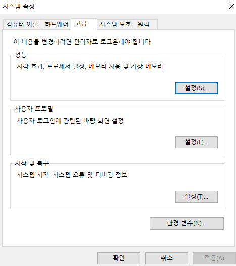 시스템 변수 (사용자변수 아님)에 path를 찾아 편집을 누른다.