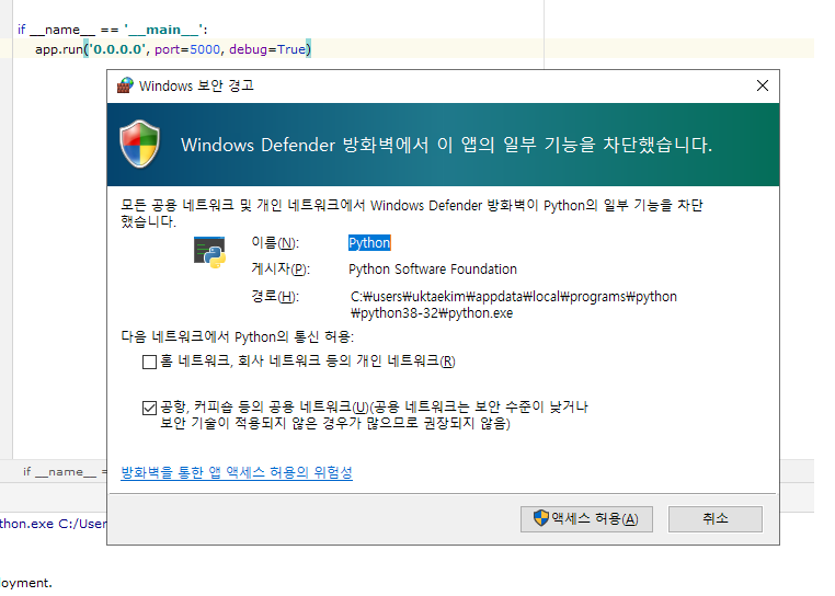 # 이 코드를 만나면, 서버가 계속 돈다. 다시말해서 app.route를 여기 if __name 밑으로 가면, 적용안됨. 즉 이 app.run은 맨 마지막에 있어야 한다는거네.