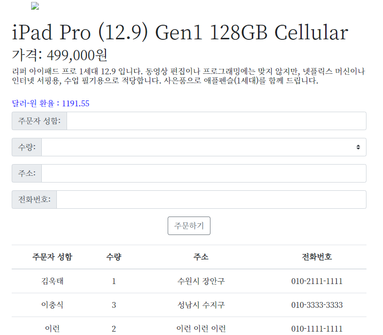 // 주문하기 버튼 누르면, 값들 읽어와서 디비에 저장, 해당 사이트에들어가면, 주문내역이 db를 통해 로딩됨. 자동으로.