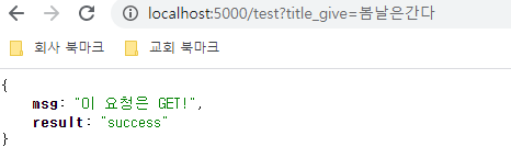 3. 응답할 메시지 데이터 : json 형식, 'result'= 'success', 'msg'= '이 요청은 get!' 이런걸 보낸다고 정함.
