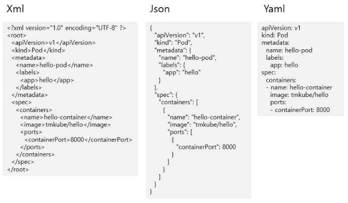 사람이 쉽게 읽을 수 있는 데이터 직렬화 양식이다. 프로그래밍에서 사용하는 데이터 포맷은 여러가지가 있다. 이러한 포맷은 타 시스템 간에 데이터를 주고받을 때 쓰는 약속이다. 또한 데이터를 리스트화 하고, array, dictionary(key-value형태) 등의 형태들도 모두 표현할 수 있다. 전통적으로 xml, json을 사용했고 현재 좀 더 발전되어 yaml이라는 포맷이 생겼다. 현재 많은 오픈소스에서 xml, json 등을 많이 쓰지만, yaml로 많이 변경되는 추세이다.