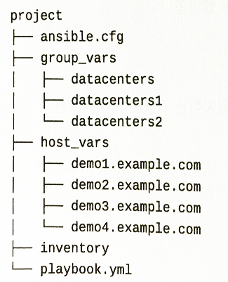 이렇게 하면, datacenters에 포함된 datacenter1, datacenter2 각각에도 위의 변수가 적용된다. 이 말은, 각각 demo1~4.example.com 에도 적용된다는 뜻이다. 만약 단일 호스트 demo1.example.com 에다 변수를 넣고 싶으면 demo1.example.com 파일에 위와 동일하게 변수를 지정하면 된다.
