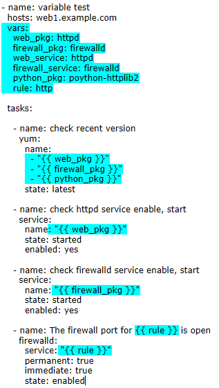 - 아래와 같이 vars에 정의된 변수들은 tasks에서 같은 파란색 음영 부분으로 참조된다.