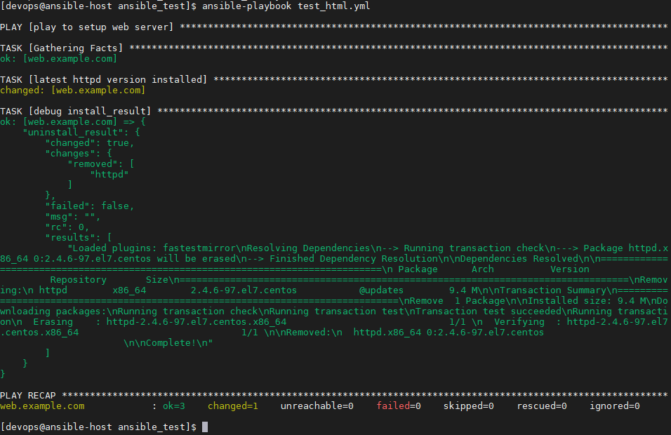 아래 구문은 이미 설치된 httpd를 uninstall 하는 것이다. (참고 : debug 모듈에 대한 상세 정보는 이후에 자세히 전달한다.)