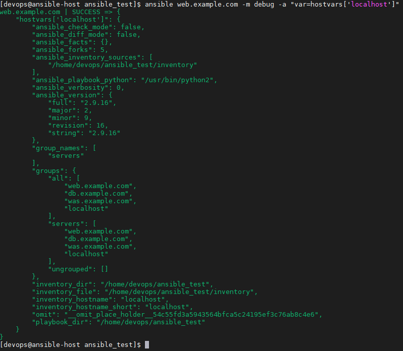 - ['localhost'] 부분을 빼면, 인벤토리 안에 있는 모든 호스트들의 데이터도 싹 긁어온다.