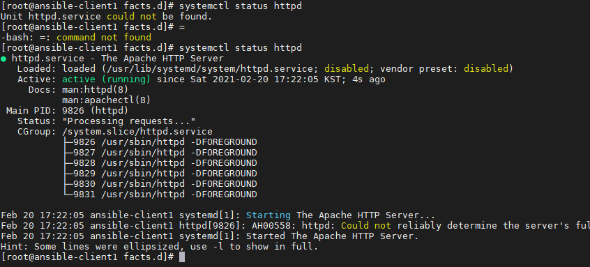 - 처음엔 없었는데 playbook 실행 후에는 이렇게 변경된 것을 알 수 있다.