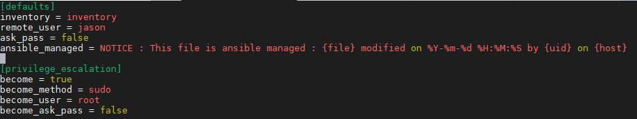 - 여러 방법이 있지만 가장 간단한 방법은, ansible.cfg의 [defaults] 섹션에 ansible_managed = 라는 부분을 추가하는 것이다.