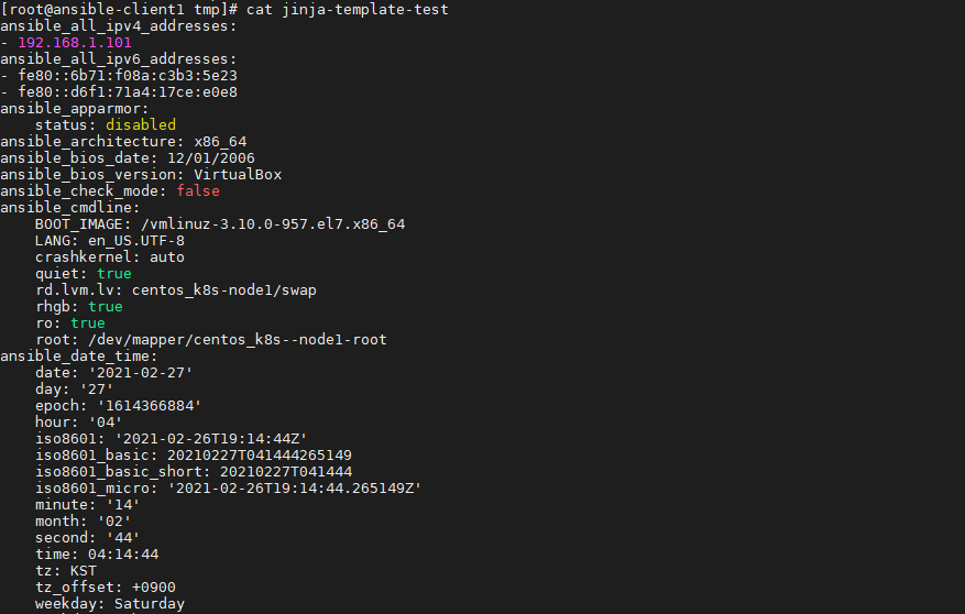 * 예시 : ansible client의 팩트변수로 템플릿 생성하기