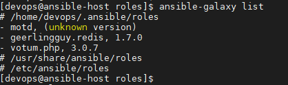 - roles가 저장되는 default 다운로드 위치 3곳에 설치된 roles를 보여준다. 기본 위치는 다음과 같다.
