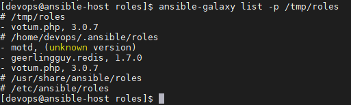 만약 /tmp/roles,와 /home/devops/.ansible/roles 두군데에 동일한 votum.php가 설치되었다면, 위의 예시대로 한다면 /tmp/roles의 votum.php가 삭제된다. 만약 아무런 옵션이 없다면 /home/devops/.ansible/roles에 설치된 votum.php가 삭제된다.