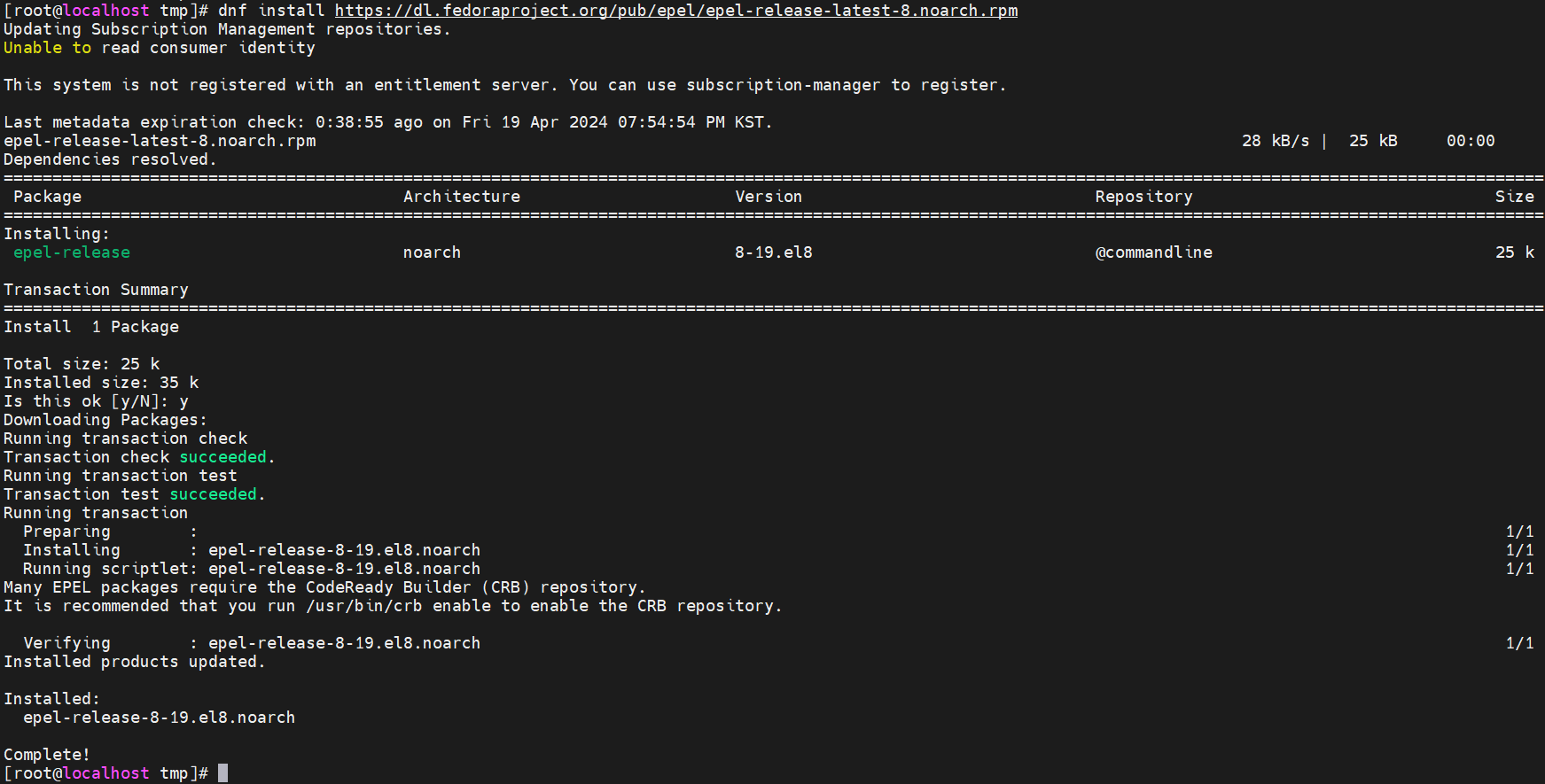 | RHEL8 서드파티 레포지토리 설치 (epel-release, rpmfusion) (0) | 2024.04.19 |