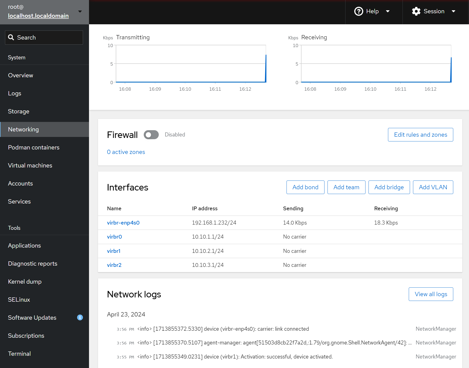 Cockpit은 레드햇 리눅스 서버를 웹 콘솔 기반으로 관리할 수 있도록 한다. 아래 이미지를 보자.