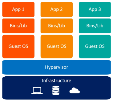 우리가 기본적으로 아는 가상머신은, 하나의 호스트OS 위에 가상머신 (가상 하드웨어) 를 만들고, 거기에 운영체제를 설치하고 사용하는 것이다. 즉 각 가상머신머다 커널이 다르다.